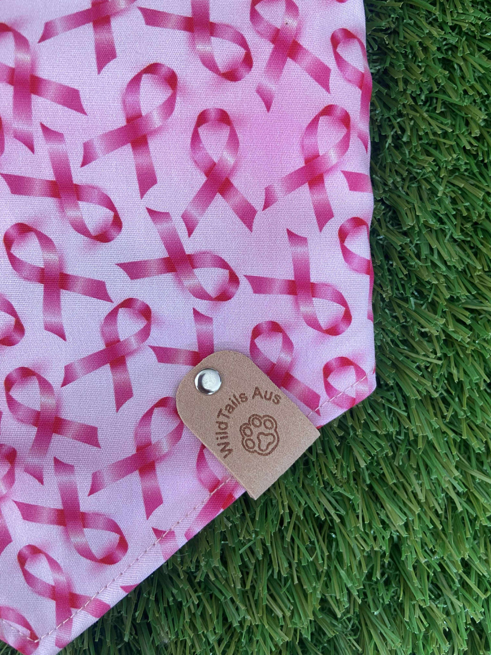 Pink Ribbon double sided tie up pet bandanna, pink ribbon print with complementary solid colour on reverse side (perfect for customisation).