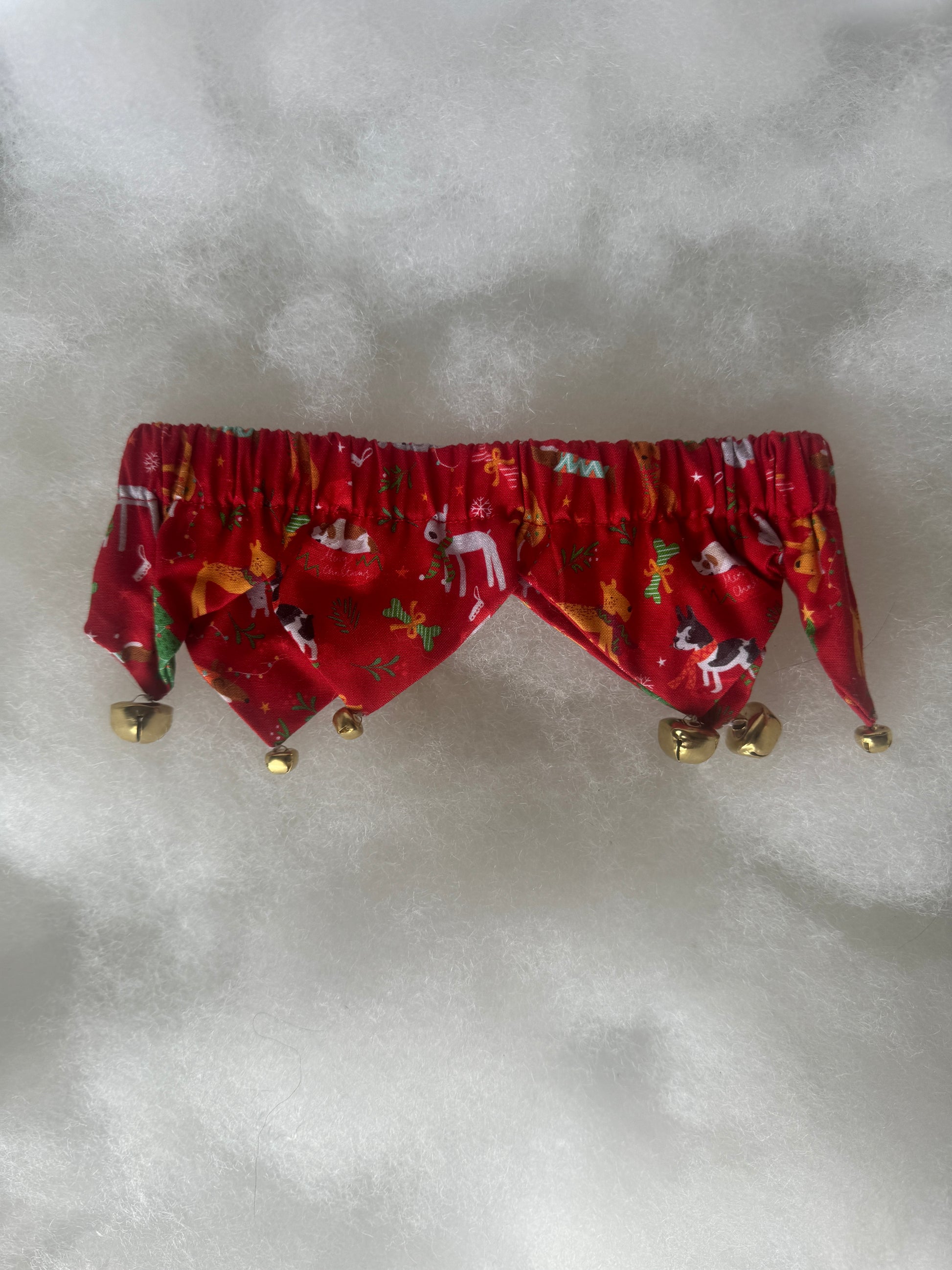 Novelty Christmas bell elastic collar, not to be used as an actual everyday collar.