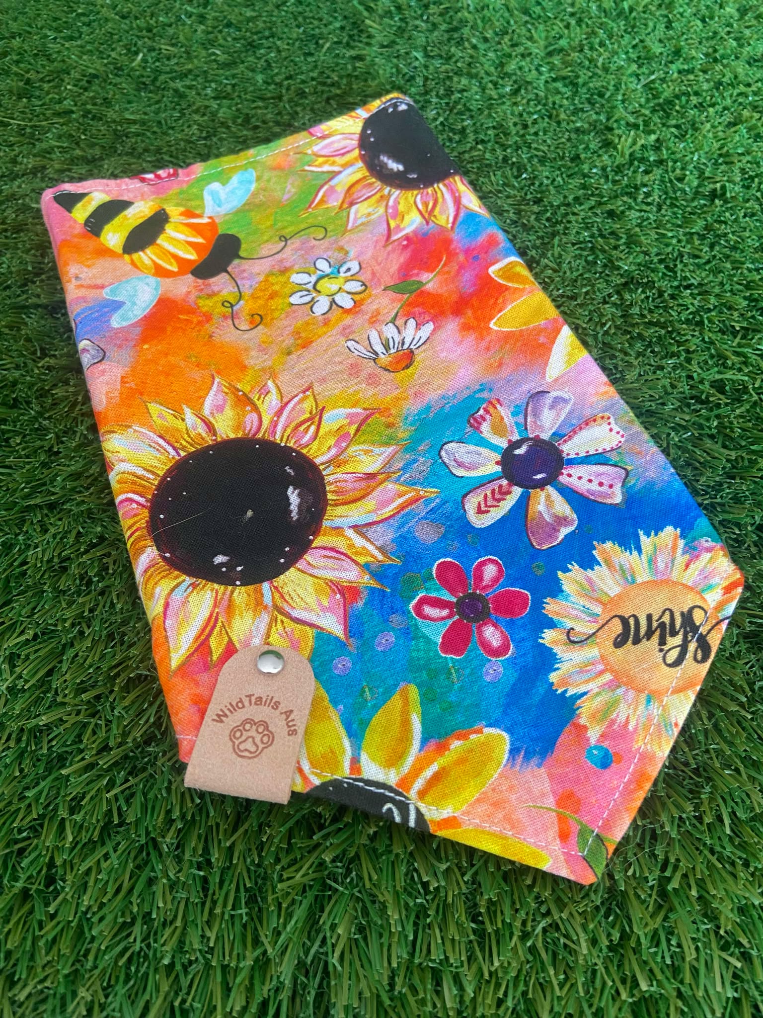 Feel Good double sided tie up pet bandanna, outdoor adventure print with complementary solid colour on reverse side (perfect for customisation).